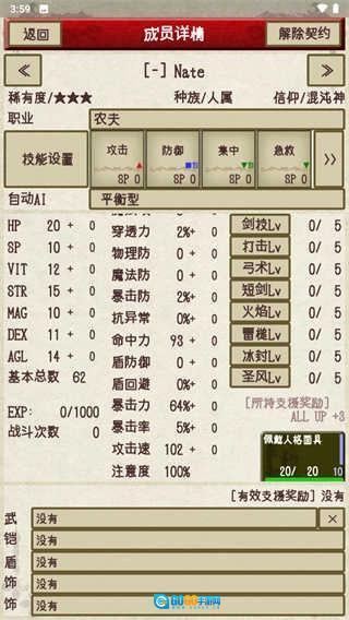 2、前500关,主力盾只需堆肉,优先堆VIT和防御属性,不用考虑攻击属性。其他角色尽量选择攻击向属性,奶妈的奶量由魔法攻击决定,前排剩下的3个角色在防具部位适当加些防御就行,其他部位重点提升攻击力或STR/MAG这类属性,也可以在支援位放个防御UP来辅助,只要能扛住就没问题。等中期盾学会团队防御V后,其他角色就可以完全放弃防御属性,全力堆攻击了。