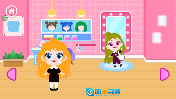 2. 点击画面左右两侧的按钮,就能切换到不同场景,为小公主开展各式各样的美妆改造。