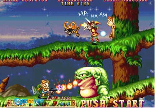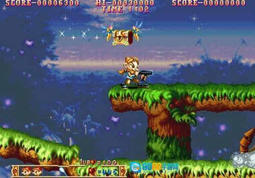 1、首先是第一个动作射击关卡,这部分也被称为陆地篇,玩家操控的角色是一位长耳朵的精灵,具备跳跃、突进和射击能力。主要场景设定在森林、城堡等地。在这个关卡里,玩家总共只能承受两次攻击,第一次受击会触发爆衣效果,第二次受击则会直接死亡。此外,关卡中可以收集到各种道具,其中最实用的是宠物道具。
