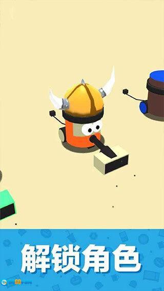 吸尘器大作战是一款画风简约、玩法新颖的休闲游戏。在游戏里,玩家将化身为一个吸尘器机器人,通过吸纳各类小物件来积累充足的能量,从而让自己不断变大。随着游戏的深入,玩家操控的吸尘器体型会越来越庞大,能够吸入的物品也会更加丰富多样,到最后甚至连整栋房子和汽车都能收入囊中!但需要注意的是,如果其他玩家操控的吸尘器体型比你更大,你就可能被对方吸进去,成为他们的“能量来源”。这款游戏十分考验玩家的策略思维与反应能力,感兴趣的小伙伴们快来试试吧!