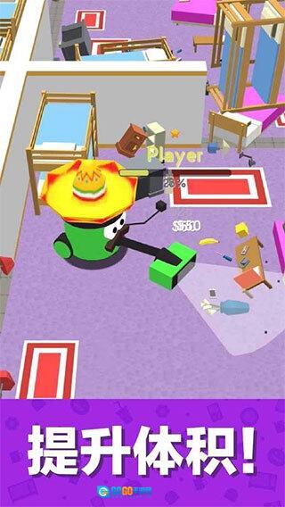 4、吸尘器的体积越大,其吸入较大物品的能力就越强,而持续吸入物品不仅能让它的体积得以增大,还能积累更多的金币。