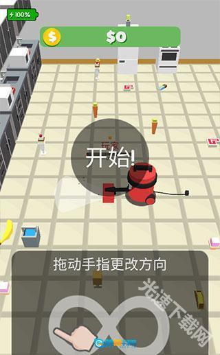 3、一切准备就绪后即可开启游戏,通过在屏幕下方滑动来控制吸尘器的吞噬方向。
