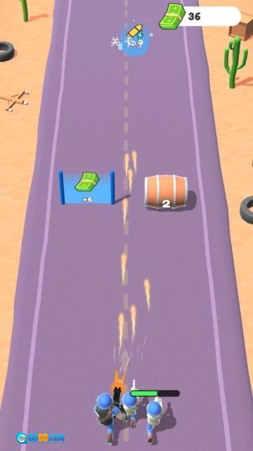 3、士兵从初始的普通小兵起步,在跑酷过程中,通过穿过升级门、击败敌人来积累经验值,从而持续提升等级,使自身更具战斗力。