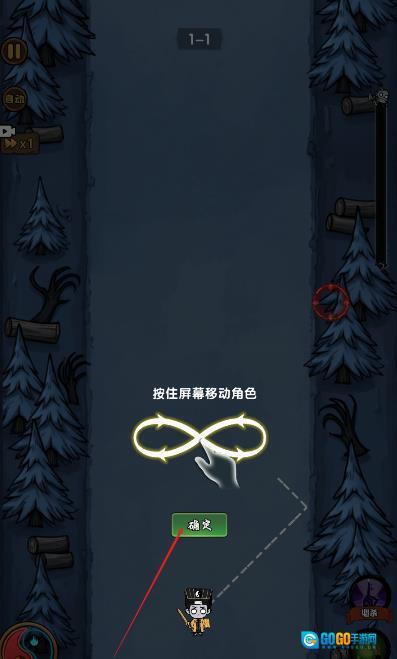 2、然后按住屏幕移动角色