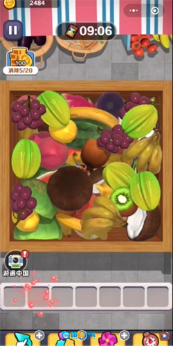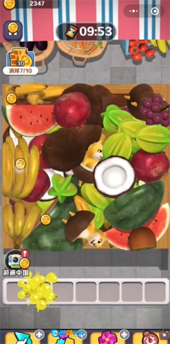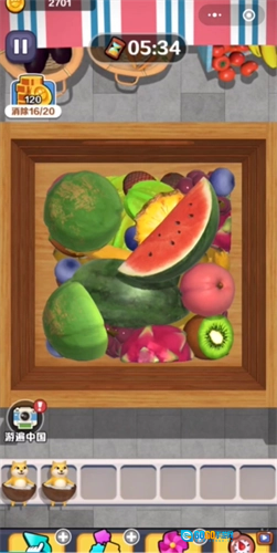 2、游戏中玩家需点击水果将其放入下方栏位,当栏位内出现三个相同的水果时即可完成消除。