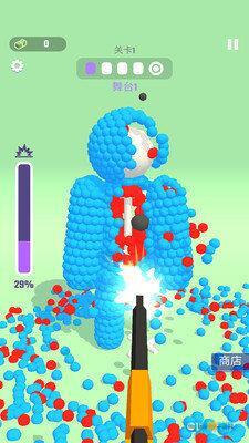 3、关卡里会出现不少糖豆人的形象,射击时这些糖豆人会慢慢崩塌。