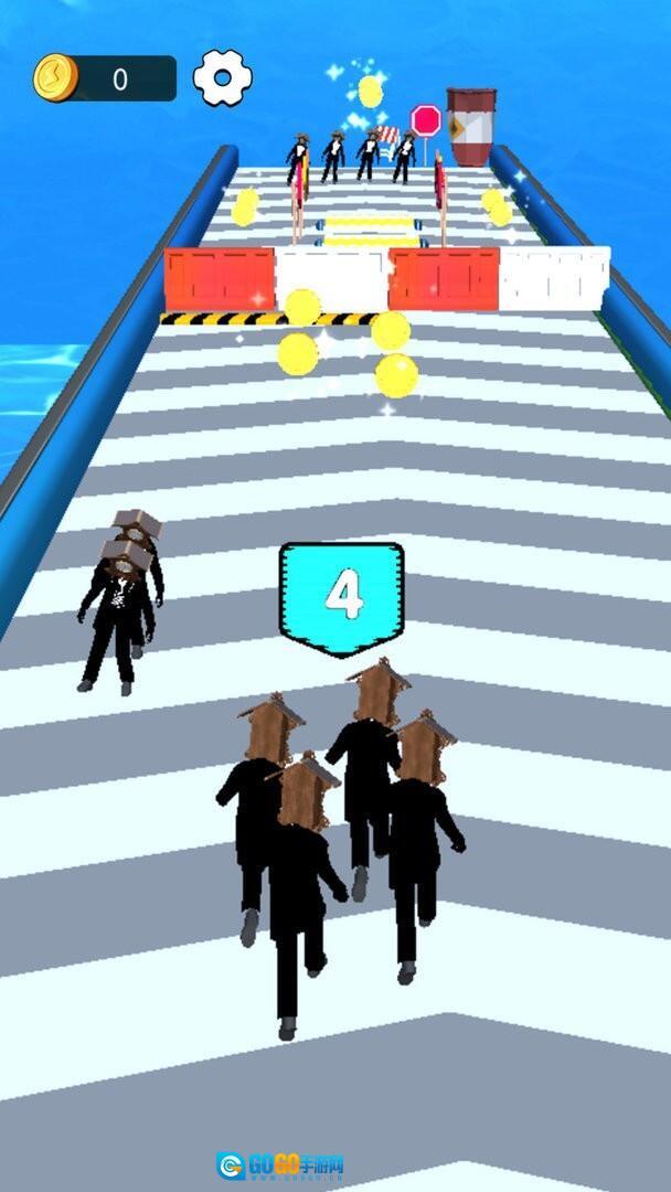 2、障碍规避技巧:留意跑道上的障碍布局,提前滑动屏幕来调整队伍站位,防止因碰撞导致人数减少,确保队伍始终保持完整。