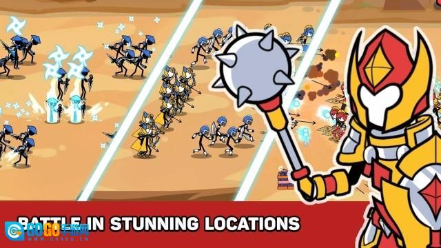 单位的类型与能力:各式各样的火柴人单位会依据自身职业(像剑士、弓箭手、法师这类)呈现出不一样的外观。它们的特殊能力会借助粒子效果或者动画来进行视觉上的展示——比如法师释放的火球会带有火焰轨迹,而防御增益效果则会以旋转的盾牌形象来呈现。