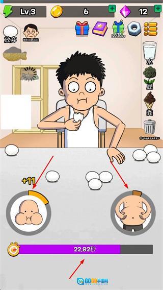 2、在指定时间里,操控角色和鸡蛋之类的物品进行互动以获取分数,并且要注意观察相关进度条的变动情况。
