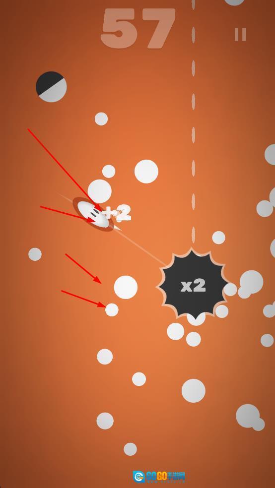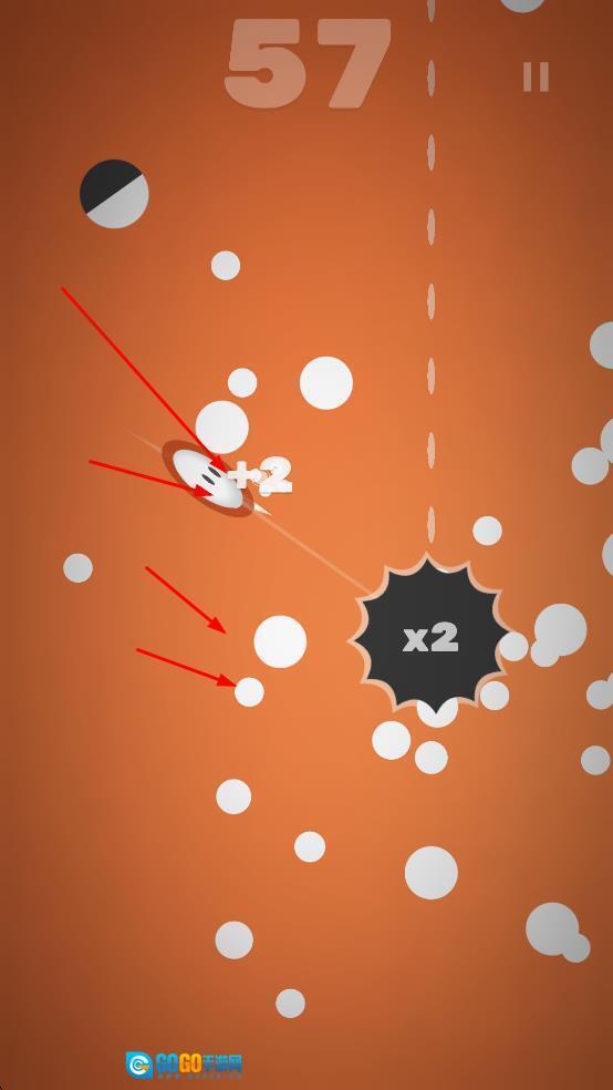 2、通过引导小球撞击白色圆点来累积分数,同时注意场景中黑白相间的特殊元素,优化移动路线以提高得分效率。