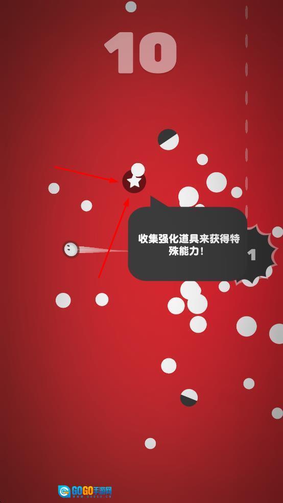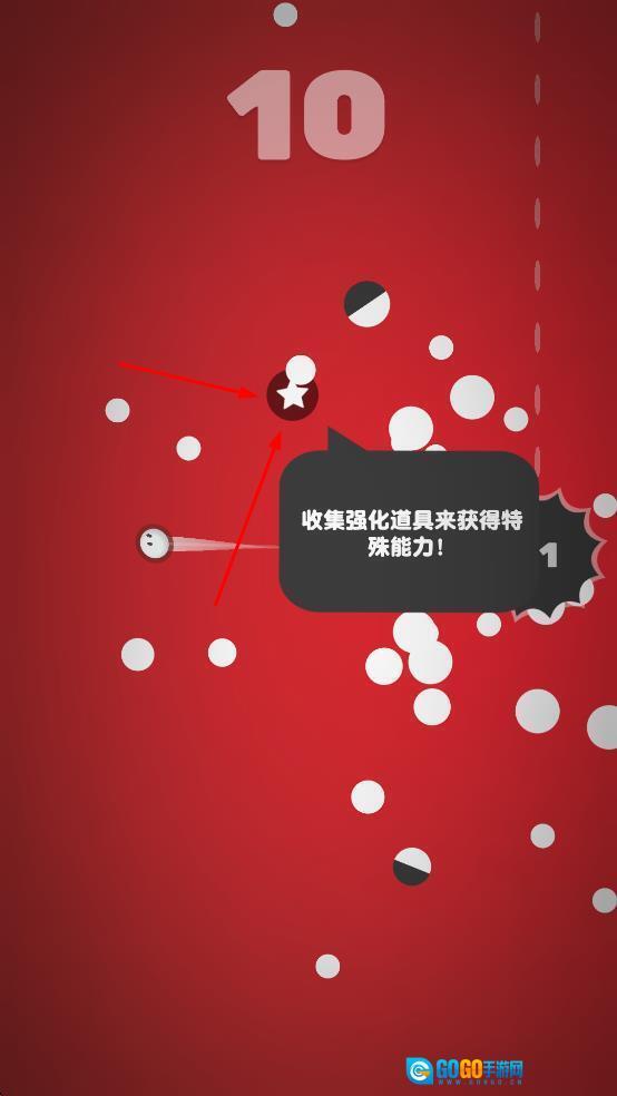 1、控制白色小球在场景中移动,通过滑动操作来调整移动方向,收集带有星星标识的强化道具,以此获取特殊能力来推进游戏进程。