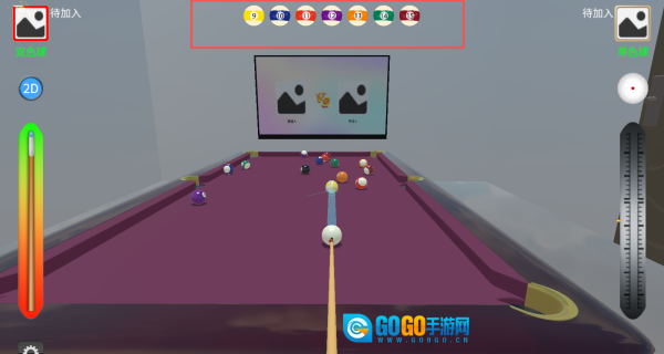 3、击球时,可借助顶部界面查看尚未入袋的球,以便实时了解赛场情况。