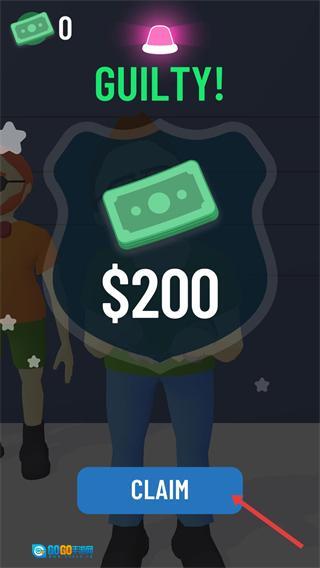4、要是顺利找出匹配的嫌疑人,界面会显示GUILTY,并且能得到奖励,点击CLAIM按钮即可领取奖励,随后开启下一轮游戏。