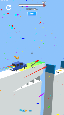 2、当遇到标有红箭头的断桥时,长按屏幕进行蓄力,把握好跳跃的时机,跨越这个障碍,从而完成新手教程(TUTORIAL)。
