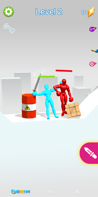 3.成功击败对手,并收集到钥匙即可闯关。