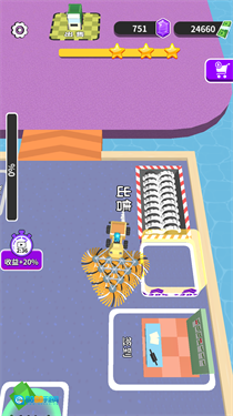 《步步小富翁》是一款趣味性十足的休闲娱乐小游戏,玩法非常简单:玩家需要驾驶不同类型的车辆(如扫地机、卡车、运货车等)去收集物品,然后把收集到的物品卖掉,就能获得钞票奖励啦。