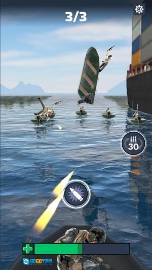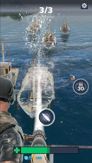 1.操控直升机在海面盘旋,360°全方位掌握战场动态,海上与陆地的敌人尽收眼底。锁定目标后一键射击,打击感十足,带来强烈的沉浸式体验。