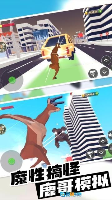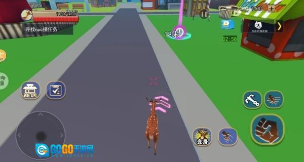 1、控制小鹿在开放世界里自由穿梭,通过伸长脖子、站立等各种动作,对建筑、路人进行互动搞怪,触发充满趣味的互动效果。