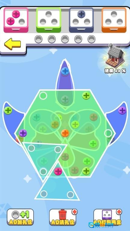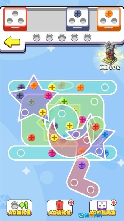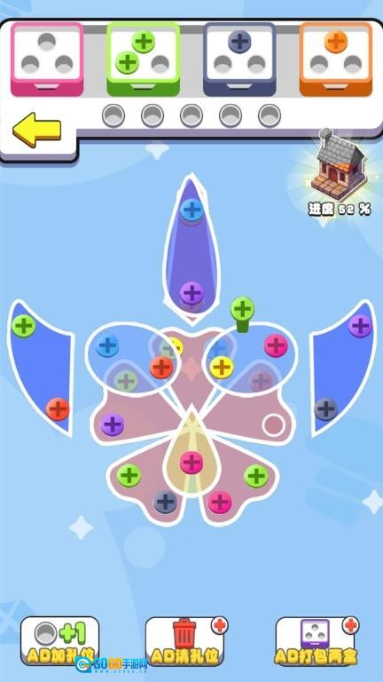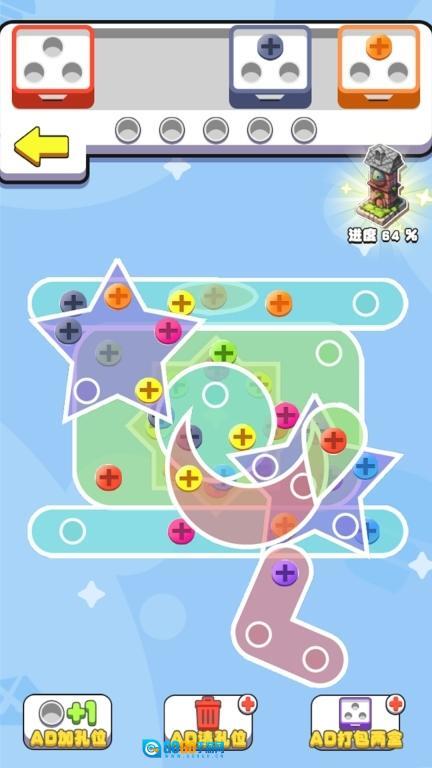 2、成套收集特定螺丝钉解锁特殊道具和装饰图案。