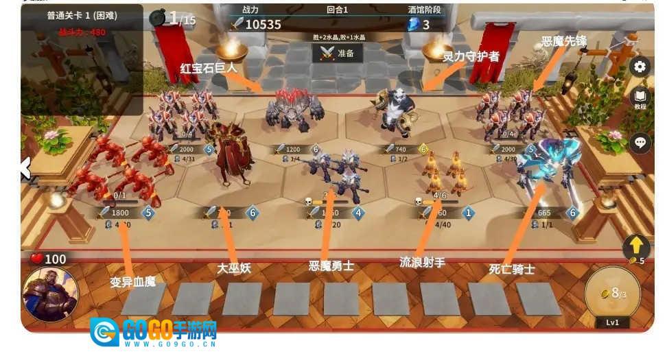 除了恶魔勇士和流浪射手不进行合金化处理外,其余所有角色都要合金。死亡骑士、大巫妖和石魔这三个角色优先安排合金。在站位布局上,要重点保护流浪术士。