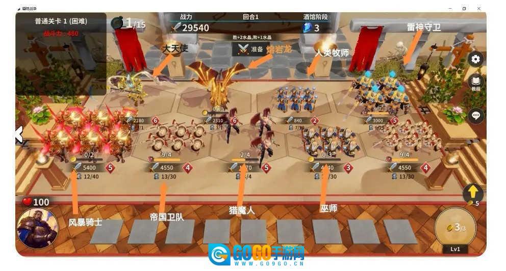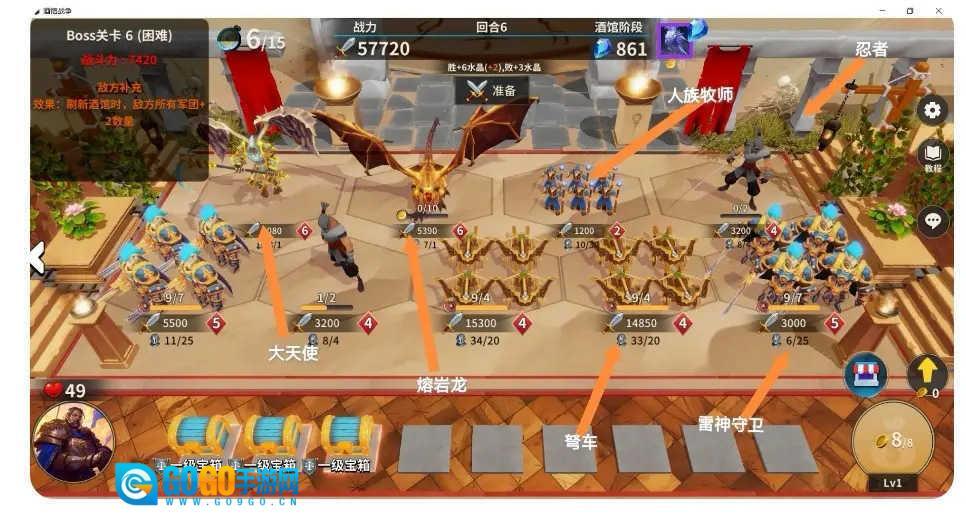 (1)完成熔岩龙任务,或者让入场的人族牧师(置于熔岩龙右侧)触发联合军团效果以提升数量。