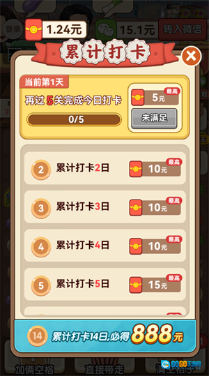 3、连续签到也能获取红包奖励,累计打卡14天可领取888红包