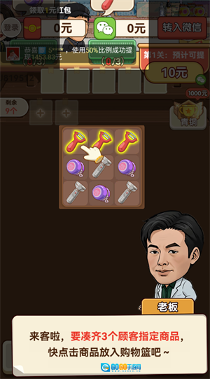 《好运杂货店》巧妙融合了经典消除玩法与商店经营元素。在游戏里,你将化身为杂货店老板,通过完成消除关卡来装扮店铺、上新商品、招揽顾客,还能体验拆红包的惊喜。游戏操作简单易懂:只需用手指点击屏幕消除对应图案,每通关一次,就能为店铺解锁新装饰或新商品。这种设计让经营过程既充满趣味,又不失挑战感。