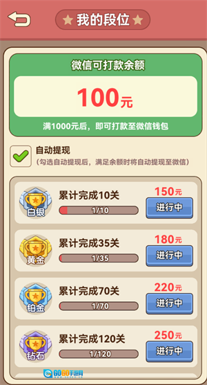2、通过游戏关卡数越多,提现的比例越大
