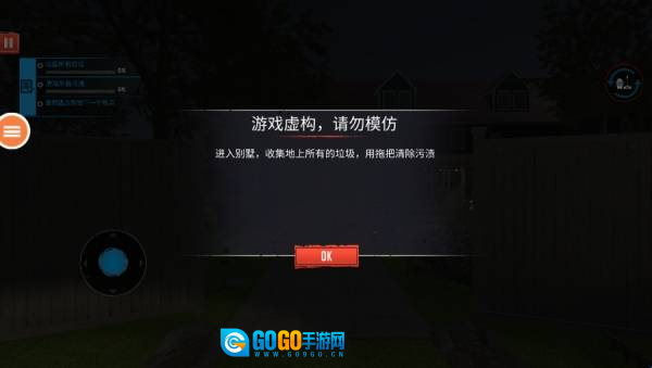 3、进入游戏后,把别墅周边的垃圾收集起来,再将别墅打扫干净。