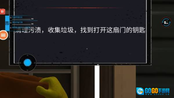 4、和门进行互动,把门口的污渍与垃圾清理干净,这样才能得到钥匙。