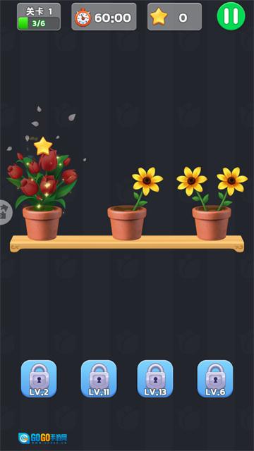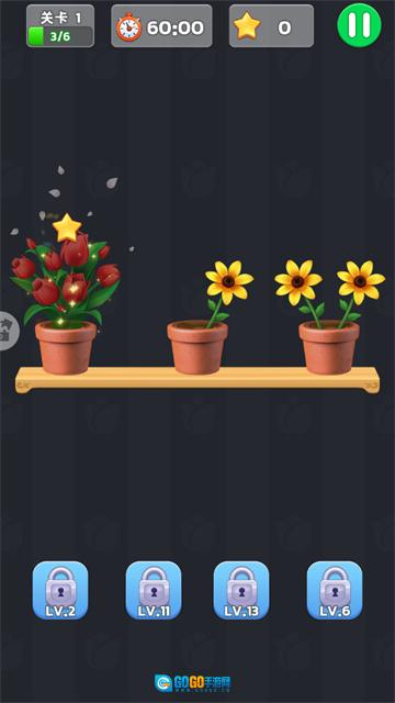 插花连连看是一款将经典连连看玩法与花朵元素相融合的单机休闲消除游戏,玩家需要把三朵相同的花放置到同一个花瓶中,以此来逐步消除花朵,最终达成各关卡的通关目标。