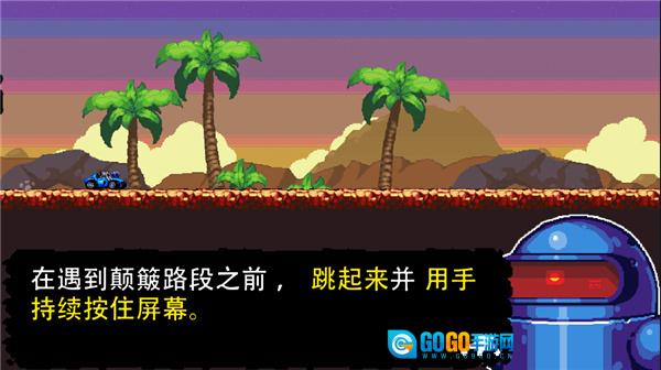 3、在即将驶入颠簸路段时,先跳起来,然后用手持续按住屏幕。