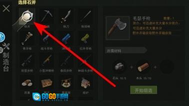 3、接下来是制作工具的步骤,打开制造台界面后,挑选你想打造的工具(比如铁斧),只要所需材料都齐全了,就能成功制作出对应的工具,从而增强自身的生存能力。