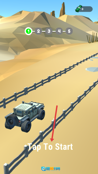 1、点击沙漠赛道上的“Tap To Start”按钮,启动越野车,开启关卡挑战。
