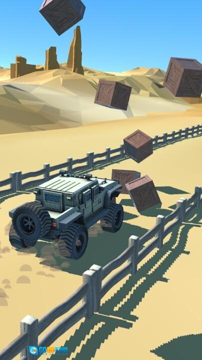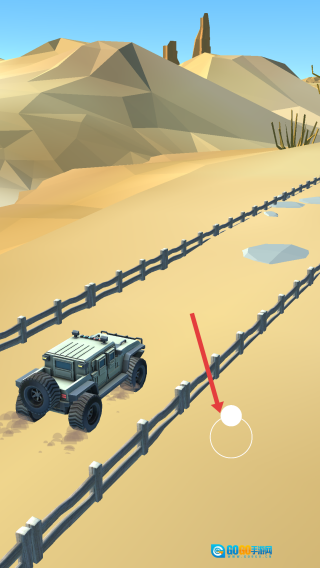 3、沿围栏路径驾驶,穿越沙漠地形,完成关卡推进。