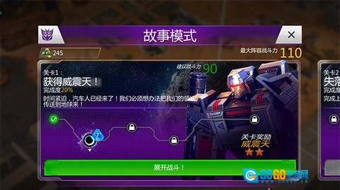 整款游戏的剧情会随着故事模式逐步展开。每当开启一个任务剧情时,玩家都能看到该剧情通关所需的大致战斗力要求。