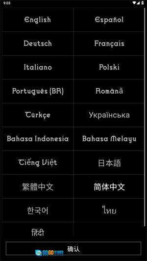 1、打开后,玩家可以直接选择最下方的简体中文,具体可参照图示。