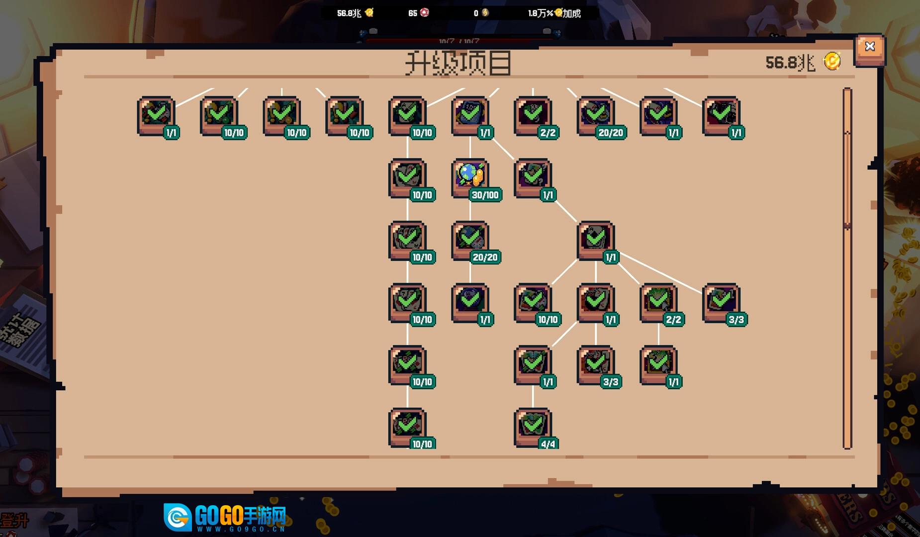 2、用你辛苦赚来的血汗钱购置强大的升级项目,加快成长节奏,开辟新的路径,最终面对邪恶的小丑!