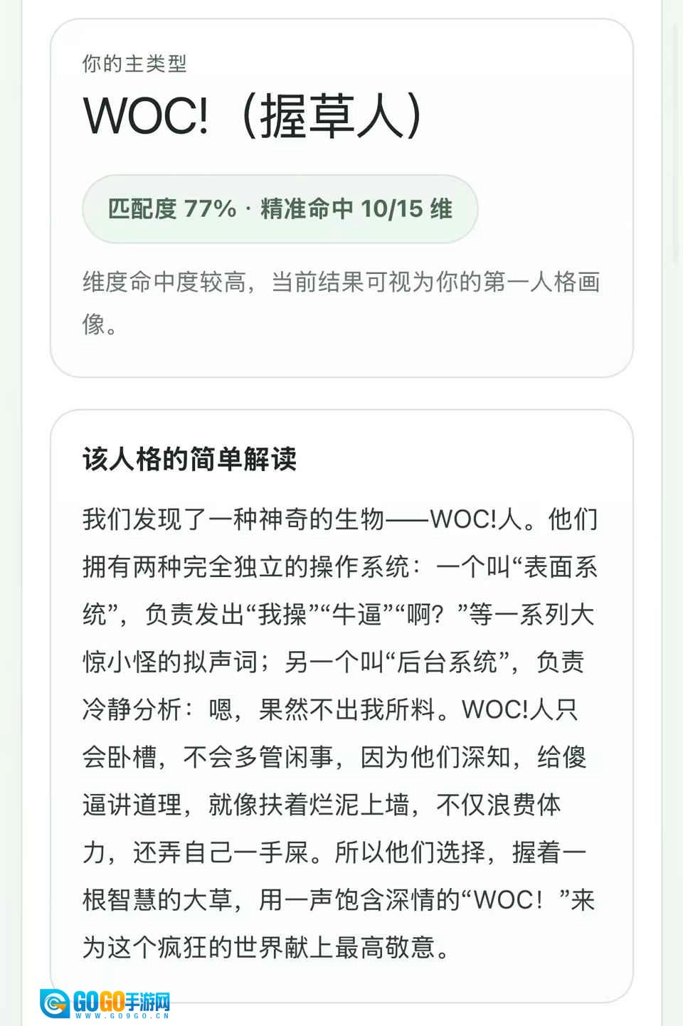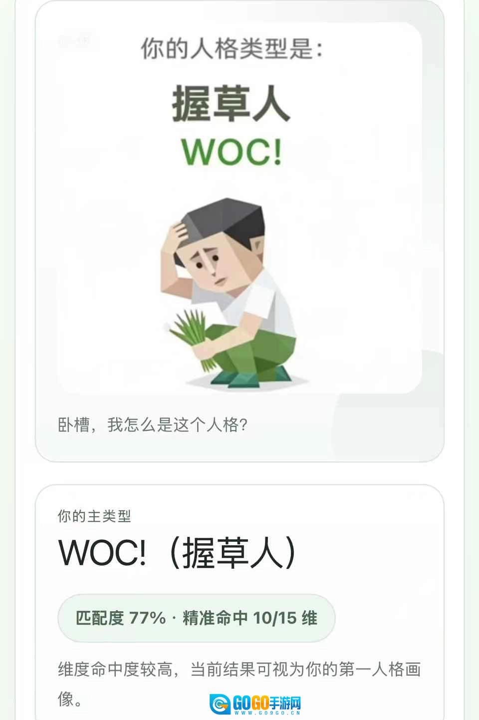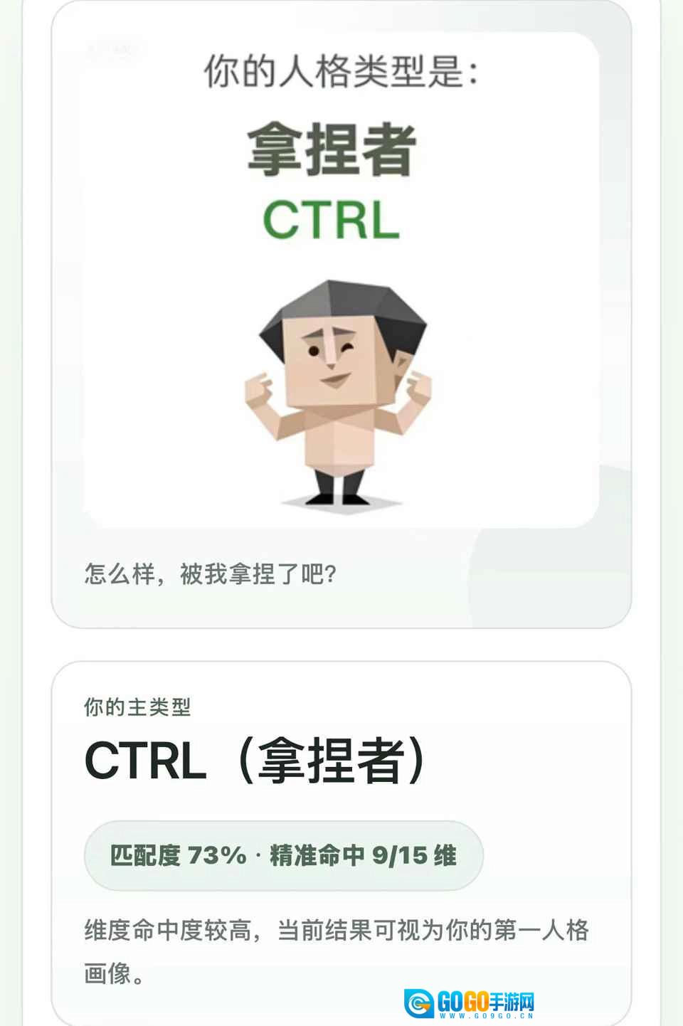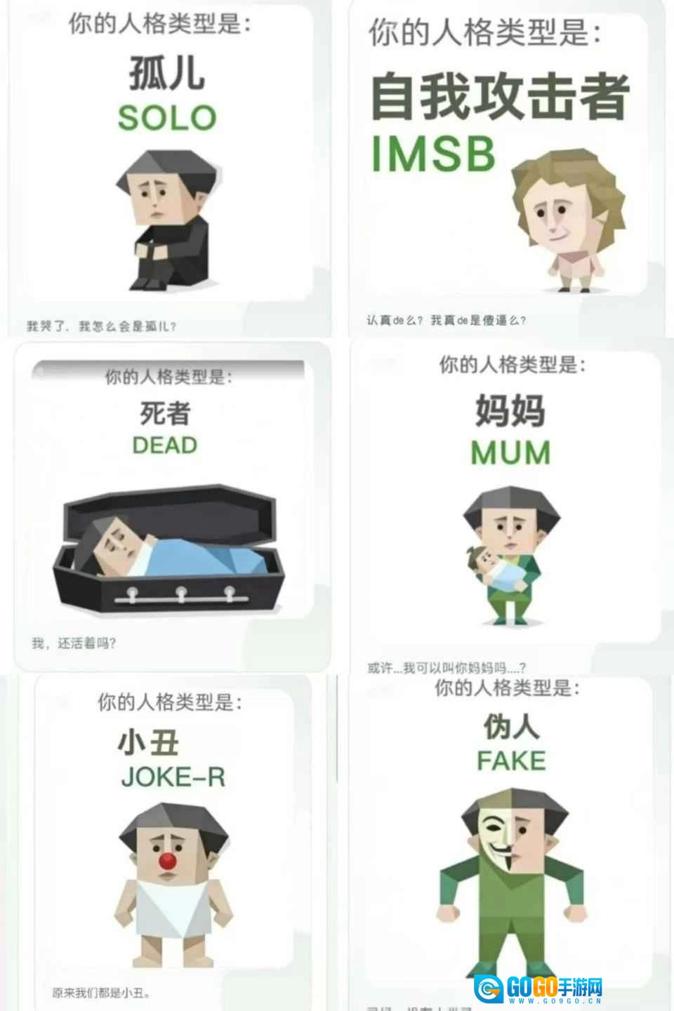 3、只要完成测试,系统就会根据提交的答案判断出角色的人格类型,例如孤儿、伪人等。