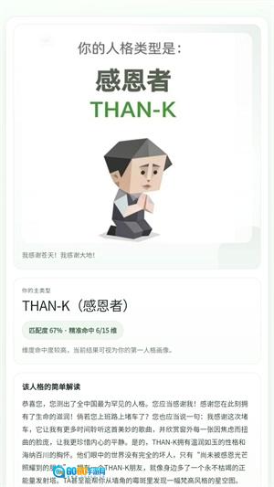 4、最终会得出一个人格类型,当然也可以重新进行测试。