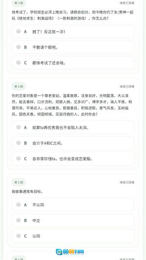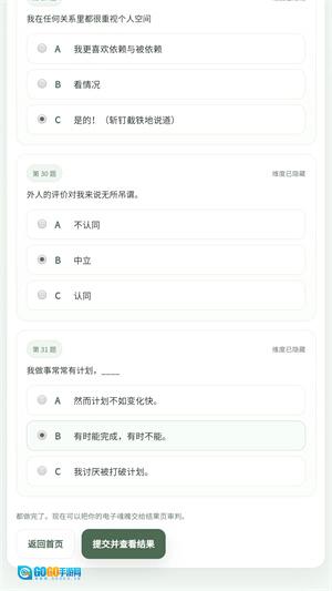 2、会随机出现31个题目,需要认真思考后做出选择,答案没有对错之分,根据自身实际情况选择即可。
