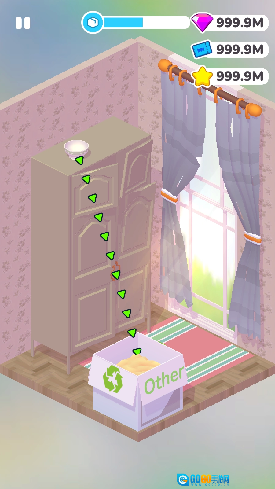 1、玩家需要把哑铃、花盆这类旧物品放进盒子里,操作很简单,只要拖动一下就行。