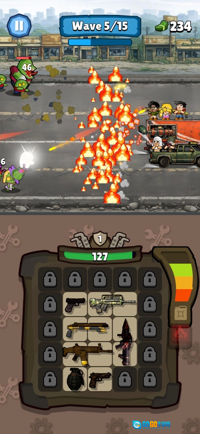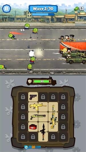 3、接着就可以去挑战关卡了,战斗时武器能快速发起攻击,努力把僵尸全都消灭掉。