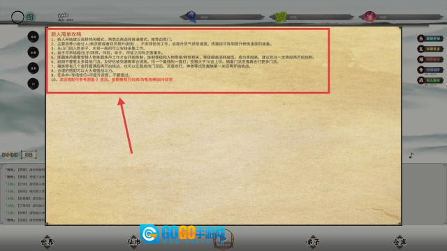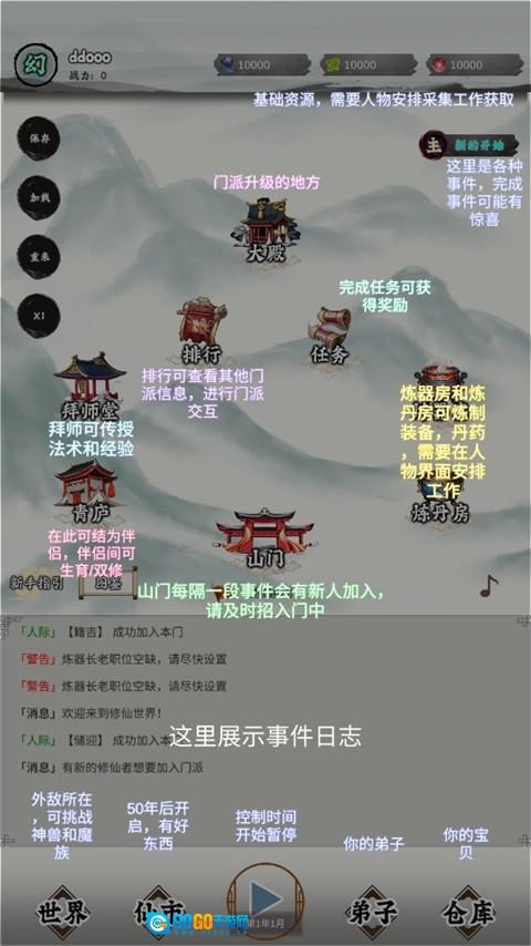 1、留意【任务指引】板块里的【门派任务】【修炼突破】这类任务,优先完成它们能快速提高门派等级和人物属性,从而开启更多功能建筑。