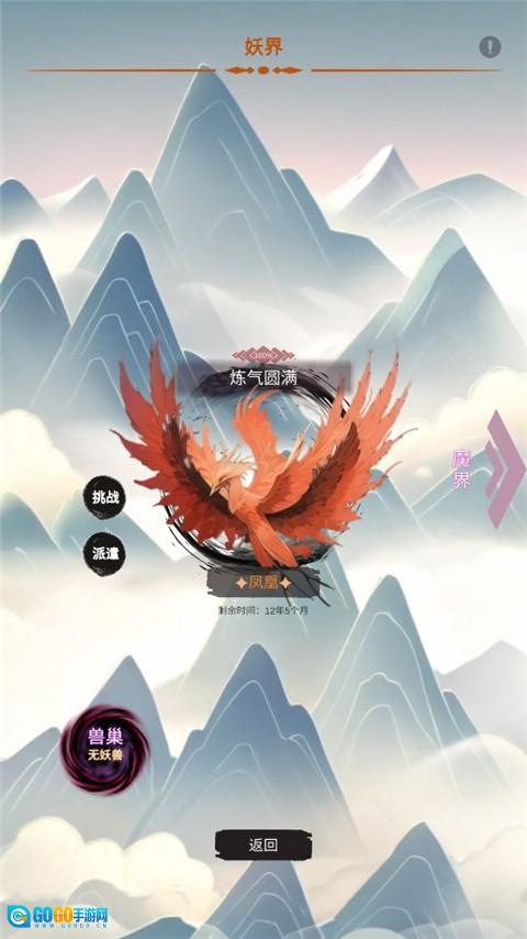 4、进入【妖界】界面后,挑战处于【炼气圆满】境界的【凤凰】神兽,挑战成功即可获取强力坐骑,该坐骑能显著增强人物的属性与战斗能力。