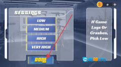 1、进入设置界面后,可依据设备的性能情况挑选合适的画质,选定后点击【DONE】按钮保存设置,以此确保游戏能够流畅运行。