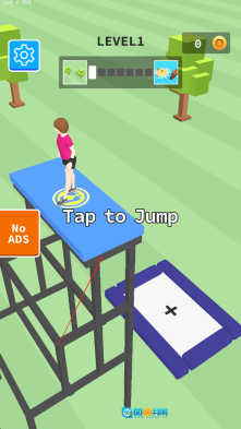 进入游戏后,在关卡选择界面点击“开始”按钮;随后通过滑动屏幕来调整角色的跳跃角度,点击屏幕即可释放弹力。初次挑战关卡时,需要先熟悉蹦床的反弹力度以及抛物线轨迹,以此完成基础的跳跃教学环节。