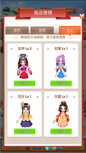 6、在员工界面里,我们能够雇佣新员工或是对她们进行升级,员工数量最多可达四位,如此一来工作效率也会得到提升。