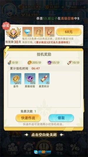 2、每次快速挂机可直接获取120分的挂机收益,小助手建议每日都买满哦。