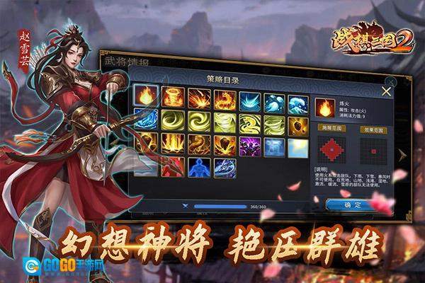 《战棋三国2》是一款以三国故事为背景制作的策略战棋类游戏,游戏里为玩家还原了众多历史上赫赫有名的三国武将,像曹操、吕布、关羽、诸葛亮、貂蝉、赵云等都在其中,玩家能够直接招募这些武将,还能派遣他们上阵为自己战斗。在《战棋三国2》里,每一位三国武将都拥有专属的职业和各不相同的属性,玩家若想在对战中获胜,就得好好利用这一特点呢。